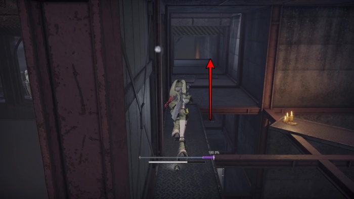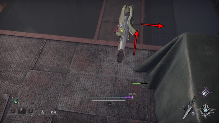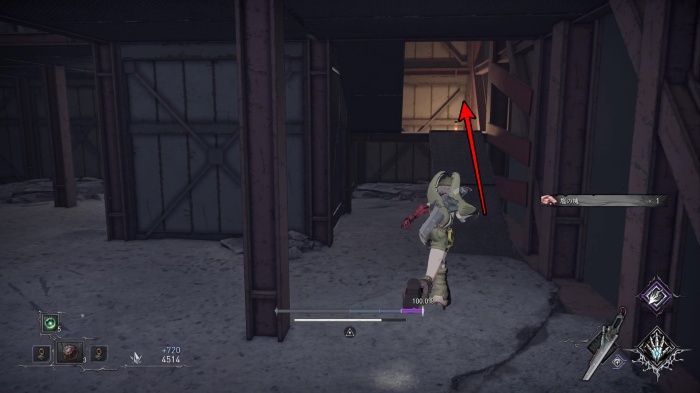 敵を倒してアイテムを回収したら階段を上がりきらず、中腹奥に進みましょう。