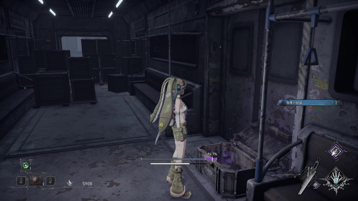 ハシゴを上がった先の車両に入ります。宝箱があり、中には「指骨の結晶」が入っています。