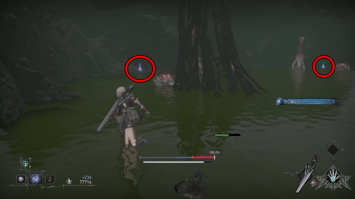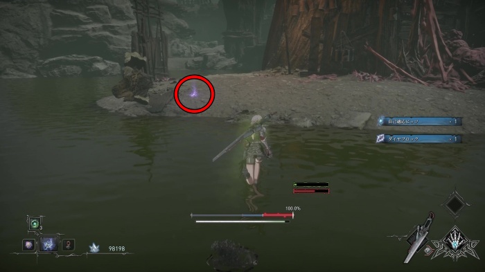 晶枝から進めるルートが2つありますが、アイテムを回収するために毒沼の右奥に進みましょう。