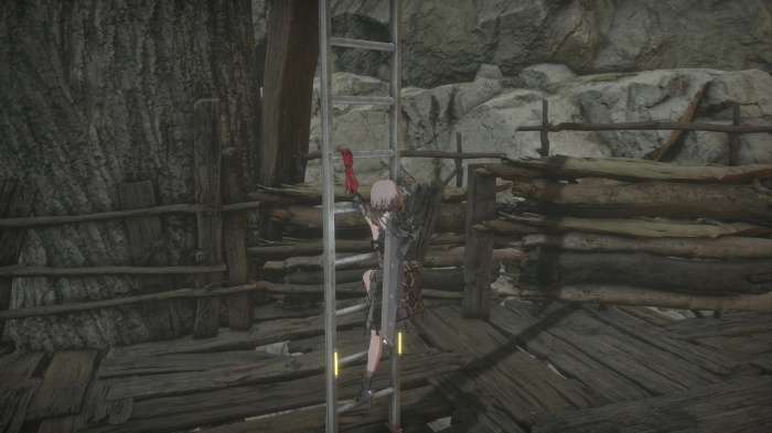 足場を降りていき、ショートカットのハシゴを下ろしましょう。