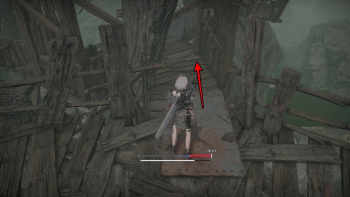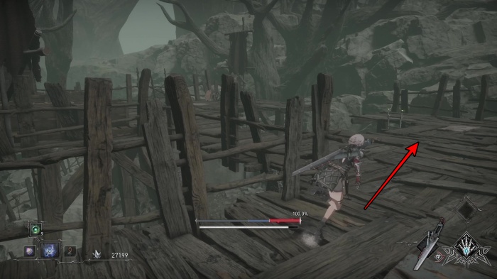 吊り橋を渡ろうとすると吊り橋が崩れます。ハシゴを上がったら吊り橋の反対側に行けます。
