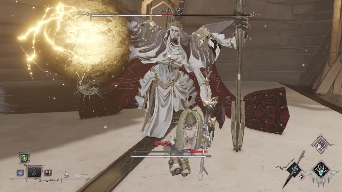 小杖を振ったあと正面に雷が落ちるので、クワイアキーパーの背後に陣取るように回避すると反撃ができます。