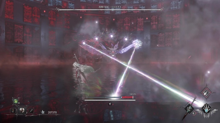HPが半分になるとレーザーを数発撃ち込んでくる大技を使用します。ペルセポネの背後に回ると最終段の全方位レーザーも避けやすいです。