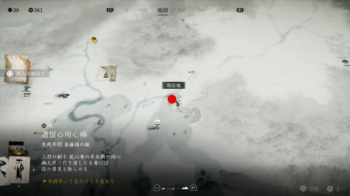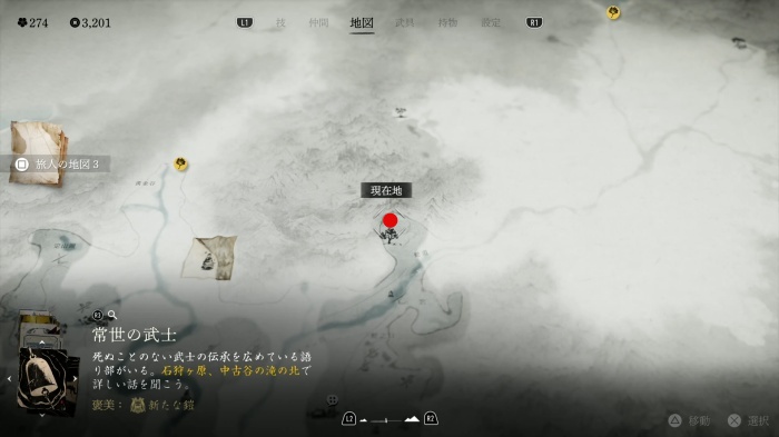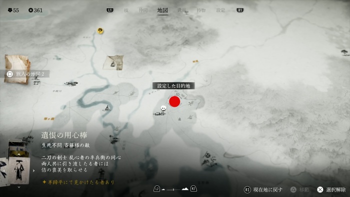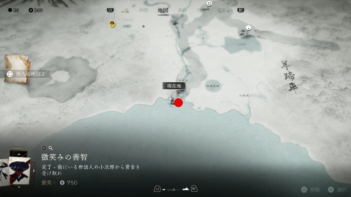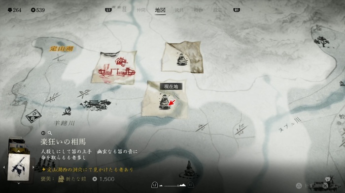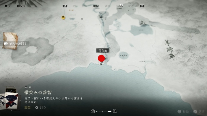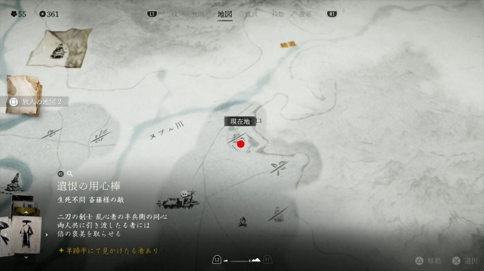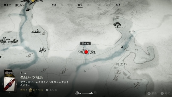 篤の道「古宿」クリア後に、羊蹄平・富士見屋にいる地図師・伊三郎と話してクエスト解放しよう。