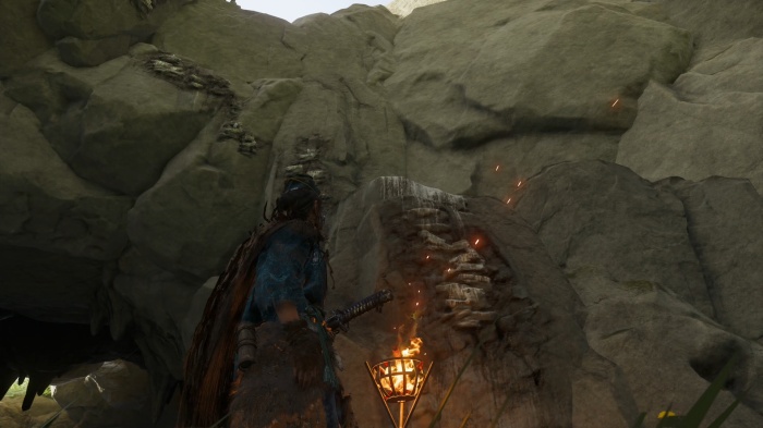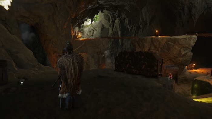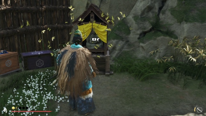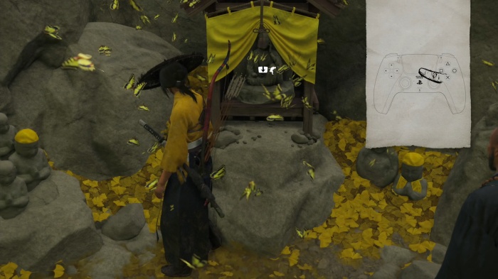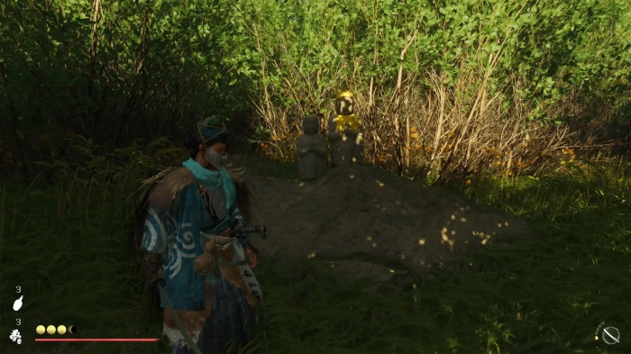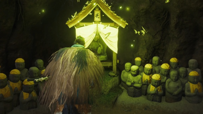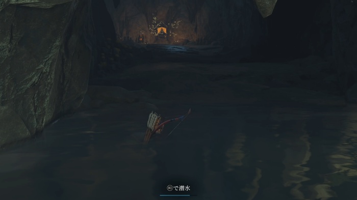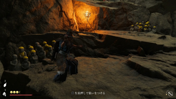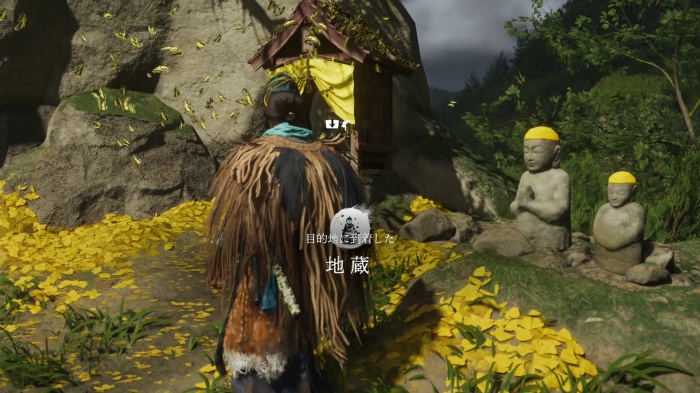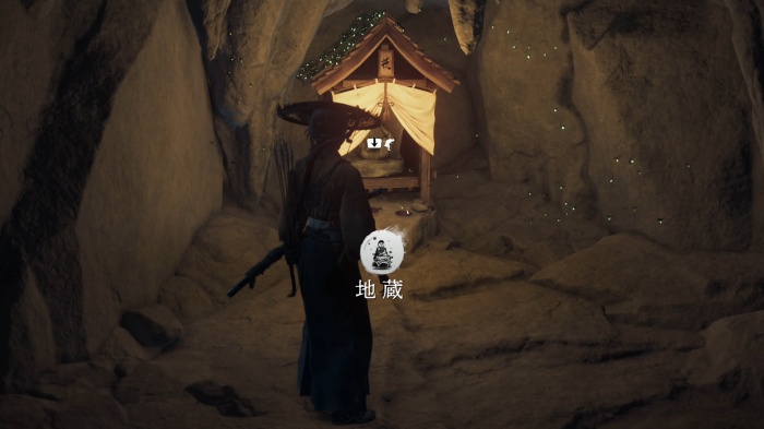 そばにある岩場から石の梯子を下りて地下の洞窟へ向かうと、地蔵があるので「礼」(タッチパッド下スワイプ)をしよう。