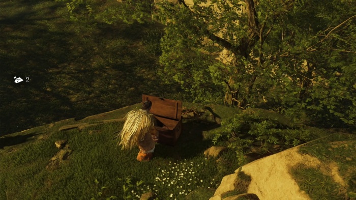 地蔵のがある岩には鉤で下に降りられる場所があり、降りると宝箱(希少金属)があるので回収しておこう。