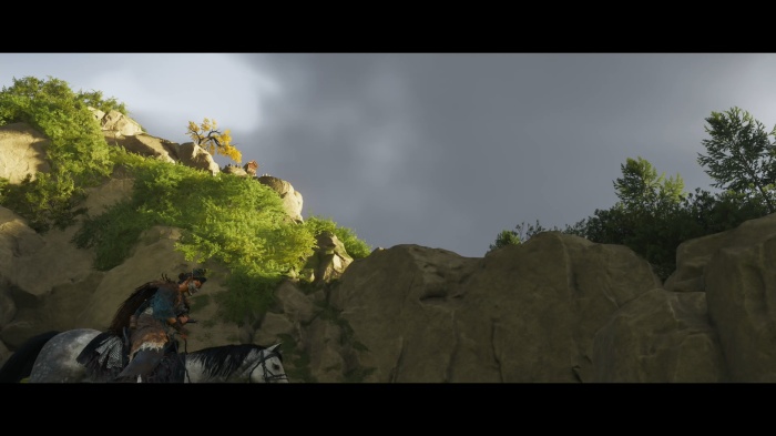 ねじれ木のそばに洞穴があるので、真っすぐ抜けて外に出る。