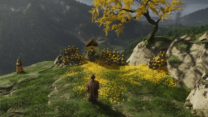 羊蹄平・羊蹄川の北東の占拠地「離れ人家」の敵をすべて倒すと地蔵に礼拝できる。(「離れ人家」は浮世草でもある)。