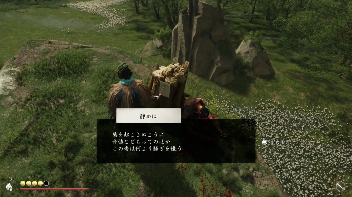 演奏するとイベントが発生し、地蔵がある方の岩山にいる浪人が目覚める。