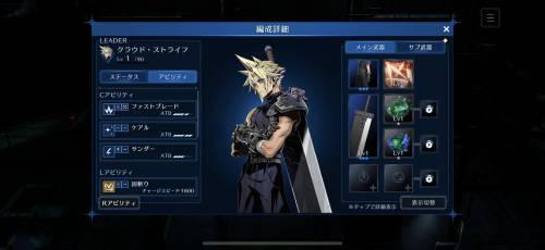 FF7エバークライシス(FF7EC)ではキャラクター1体につき、5種類の武器を装備できます。