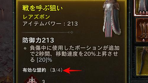 対象の防具に上限まで盟約がついている場合は効果を発揮しない。 |