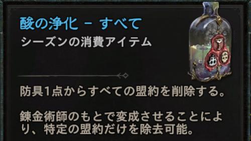 血の収穫ゾーンにあるシーカーの箱などから入手できる酸の浄化を使用することでその装備から盟約を削除することができます。