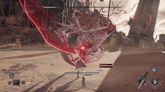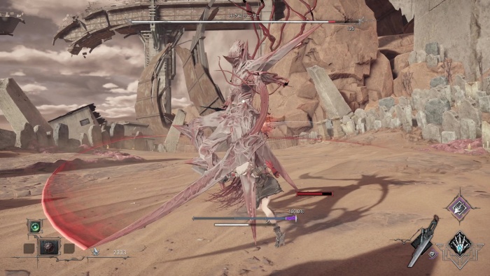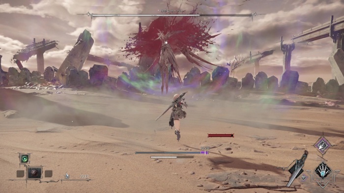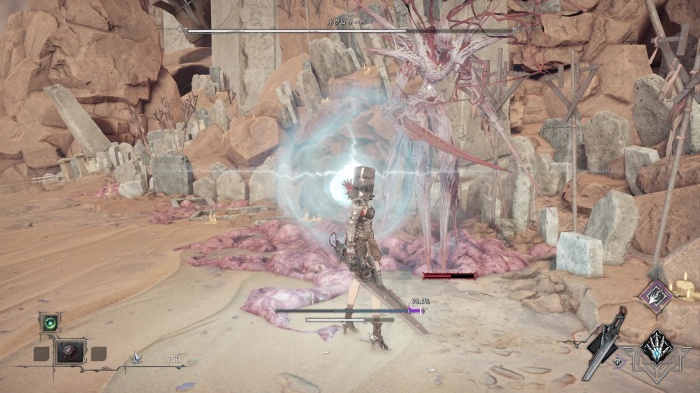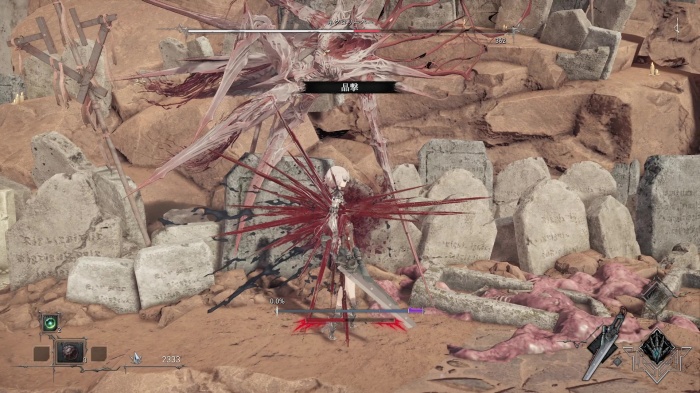 ネクロリーパーの攻撃をくらうと晶撃が蓄積していきます。溜まりきると大ダメージを受けるため、ゲージが溜まってきたら「不活の胎種」を使って蓄積を0にしましょう。