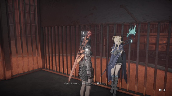 地底水路のボス「機兵の狩人」に負けると古の機械工場に強制的に移動します。檻の中にミレールがいます。