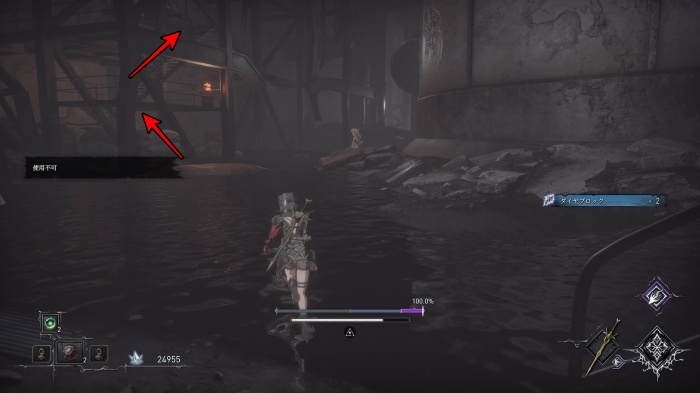 ハシゴで上がってきた場所まで戻りましょう。制御室で通路の向きを変えているので、最初に行けなかった場所に行けるようになります。