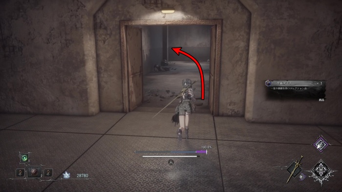 最序盤で戦ったボス「迷える槍兵・ロア」に似た敵がいるので倒しましょう。倒すと「制御室の鍵」を入手できます。