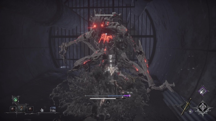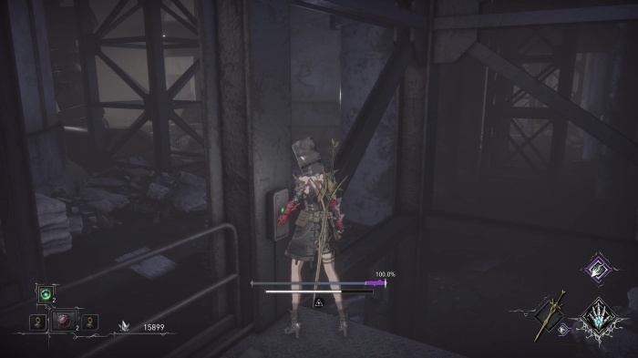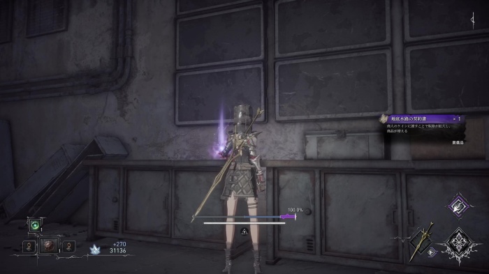 晶枝の先でボス「機兵の狩人」と戦闘になります。負けると強制的に『古の機械工場』に移動します。