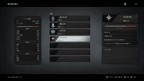 晶枝の「刻印書き換え」で主印を変えるとシンクロ率のゲージが変化します。中でも面白い主印が「代行者の印」で、ウィーク状態とエネルギーレベル無の2種類しかないピーキーな性能をしています。