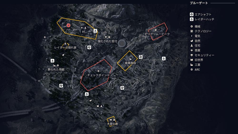 | フィールド貯蔵庫の場所 | レイダーハッチの場所 |