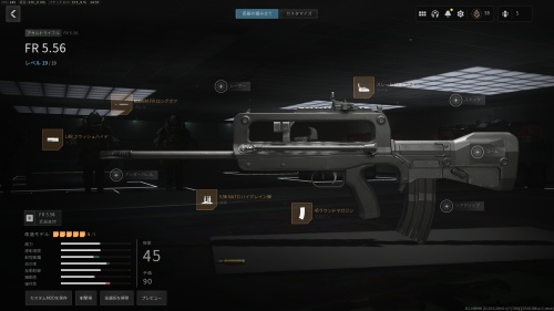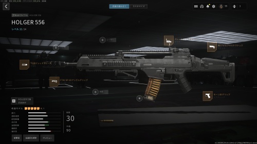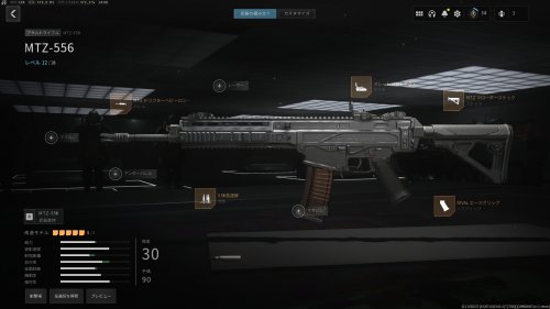 ドリフターロングバレルと5.56高速弾で弾速を高め、ストックで反動制御、リアグリップでエイム速度を高めたバランスの良いカスタム。
