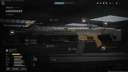 SIDEWINDERは反動がきついので、反動制御系のアタッチメントを4ヵ所装備しましょう。