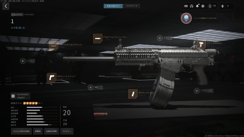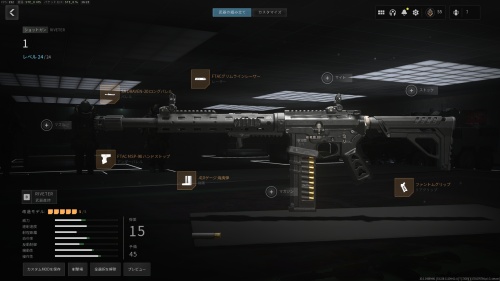 マズルとバレルで射程距離を伸ばしつつ、ストックとガードを機動力系のアタッチメントを装着しています。