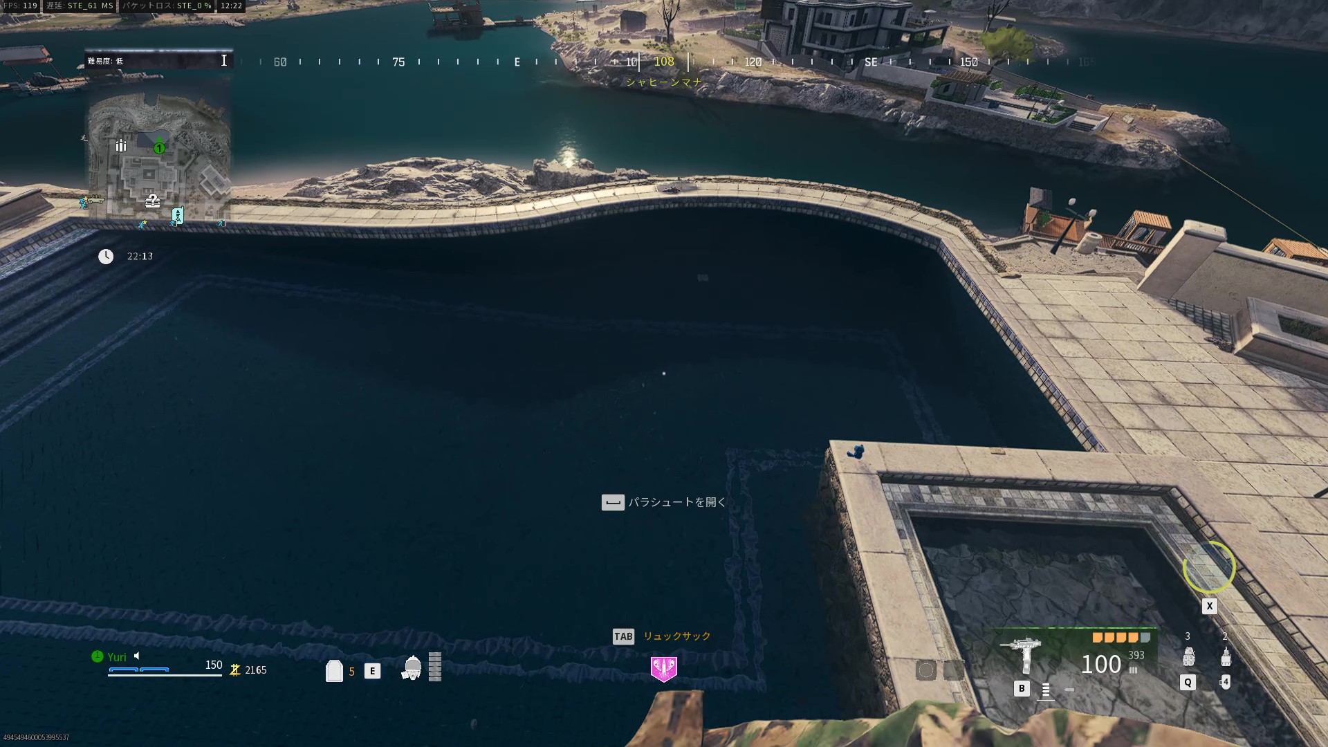 座標H7のシャーヒンマナの屋上からプールに飛び込むと報酬の裂け目が出現します。