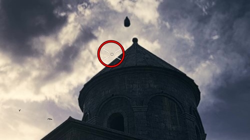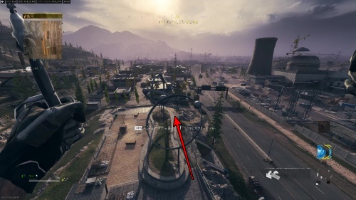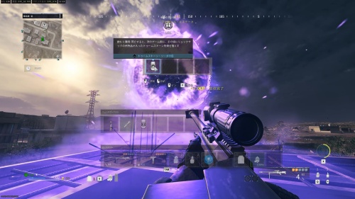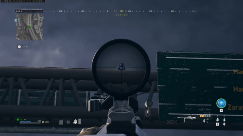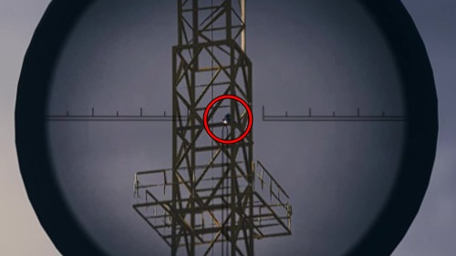 工事現場の屋上からスナイパーで鉄塔にある人形を視認します。