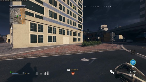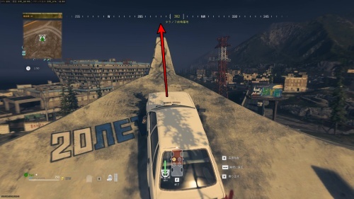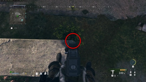 建物の東側にある石に乗り、真下にADSした状態で石の右上に合わせます。