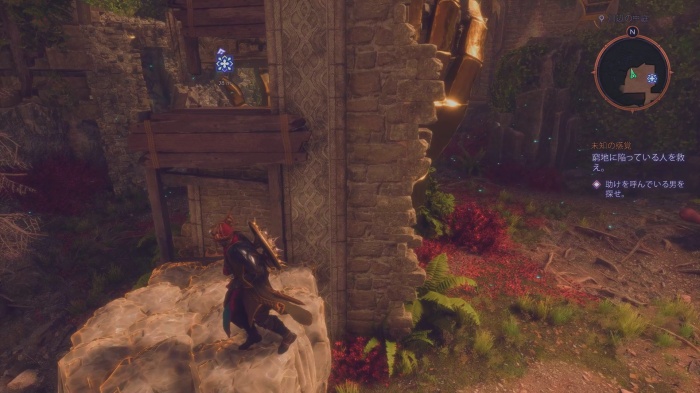 少し進むとセンチネルとヴァロタールとの戦闘になります。戦闘後、目的地ではない方の道に進むと英雄のエッセンスが必要な「乾いた希望の門」があり、電源クリスタルをソケットに嵌めた先でクエスト「オオカミの呼び声」が発生します。
