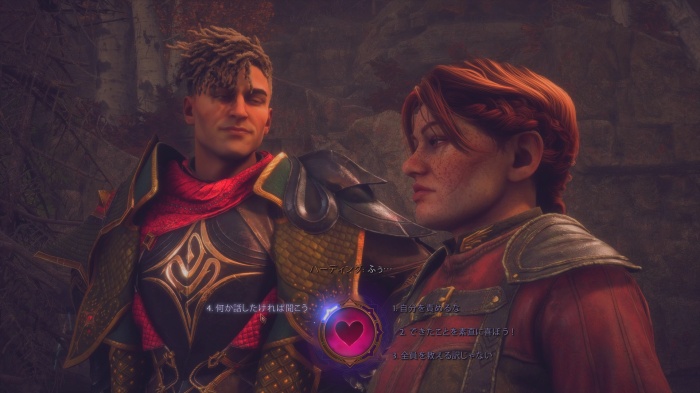 | 1.話しかけてみたらどうだ | 2.一人になりたいのか? |