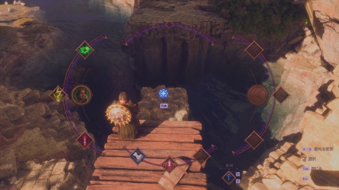 木の足場を渡り、電源クリスタルで橋を作った先に進みます。岩を動かして男の元に向かいましょう。