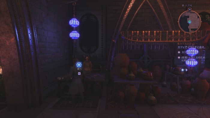 ルカニスと一緒に市場でみんなに頼まれたものを買って回りましょう。