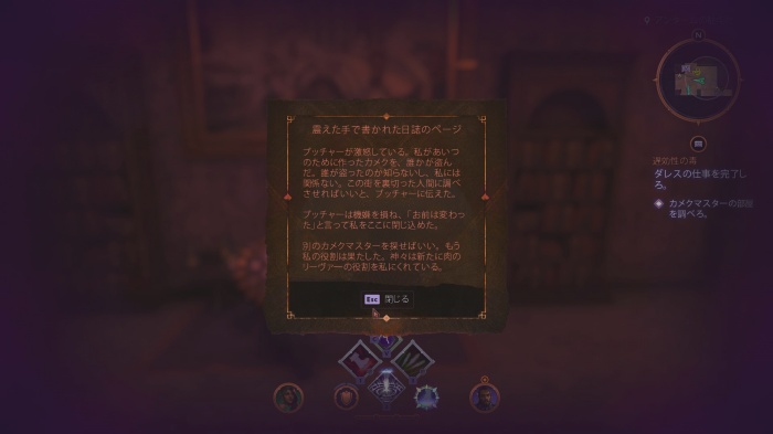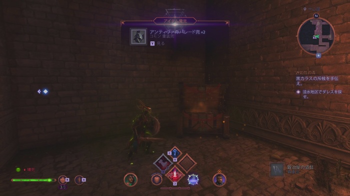 ヤコバスを解放したら来た道を戻り、目的地に向かいましょう。目的地に到着したら机の上にあるメモ「黒カラスの仕事」を見ます。