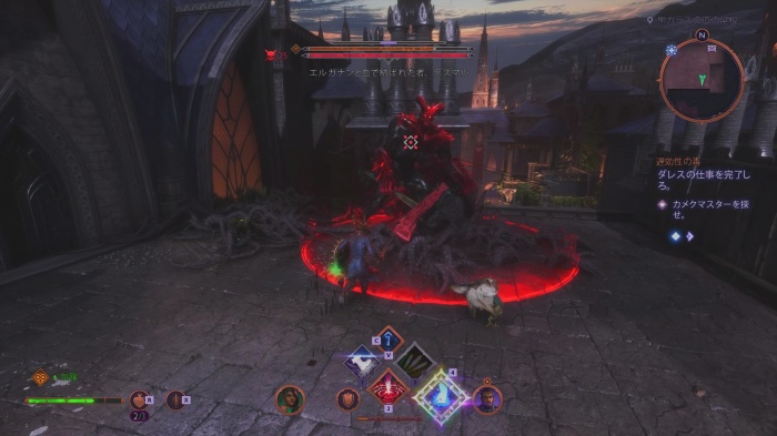 この先には敵がおり、「穢れの嚢胞」を破壊するとレベル25の「エルガナンと血で結ばれた者、デスマル」が出現します。