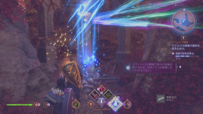 4つ目の形見がある森には「エヴァナリスの祭壇」があります。これは起動後、エリア内に出現する的を全て破壊することで体力が+100されます。遠距離攻撃で全ての的を破壊しましょう。