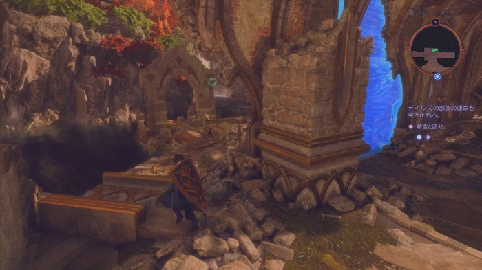 5つ目の形見がある川沿いの遺跡には2つ目のエヴァナリスの祭壇があります。ここも忘れずに起動して全ての的を破壊しましょう。