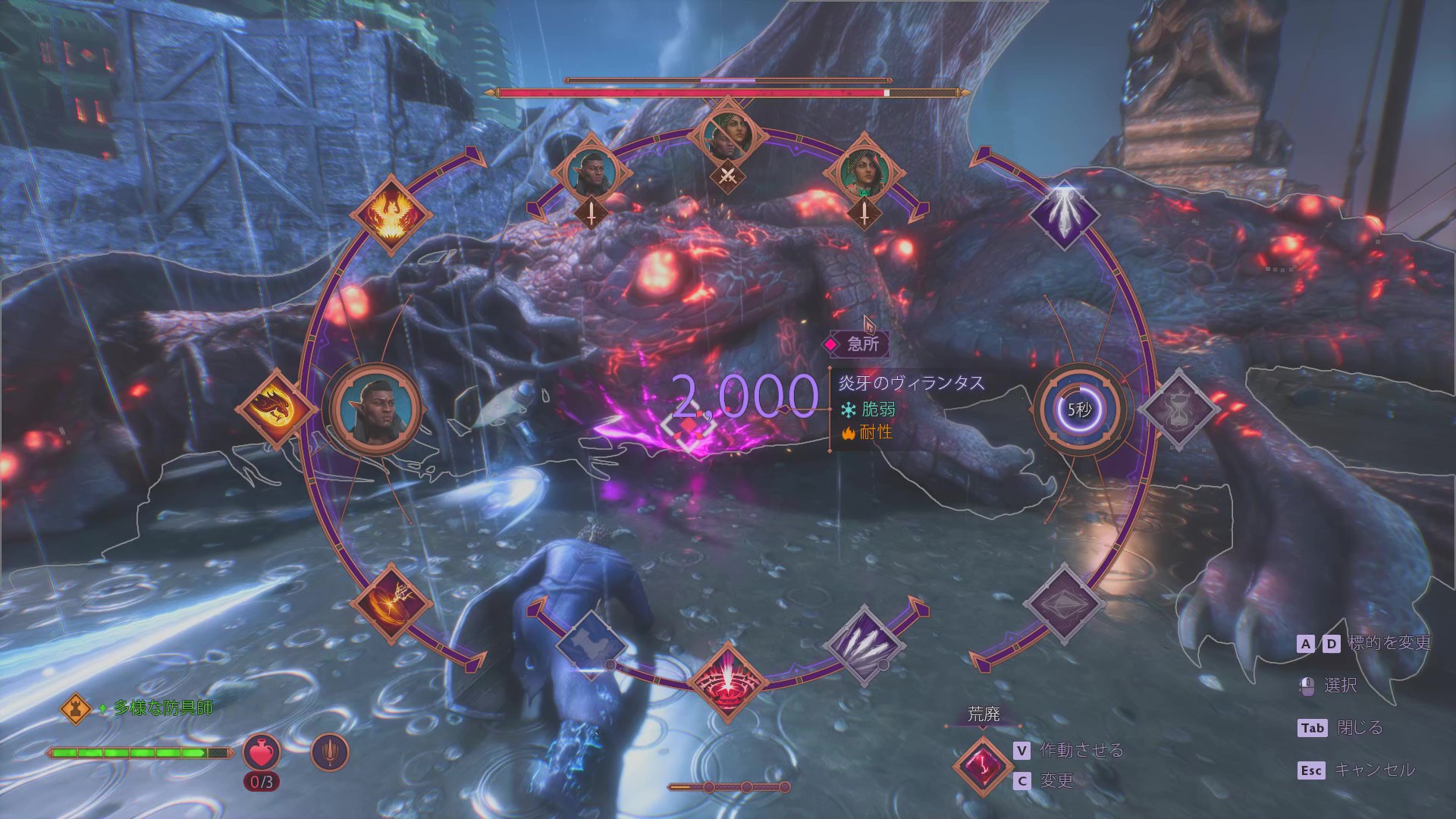 ボス「炎牙のヴィランタス」との戦闘になります。ガード不能の近接攻撃を使用してくるので近距離ではすべて攻撃を避けましょう。