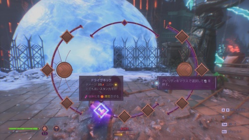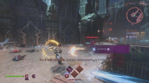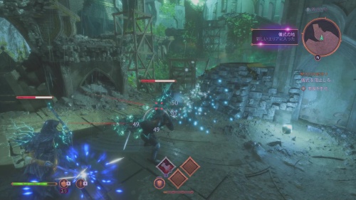 悪魔との初戦闘になります。軽攻撃でダメージを与えて倒しましょう。自身の周りが黄色くなったらガードもしくは回避をしましょう。