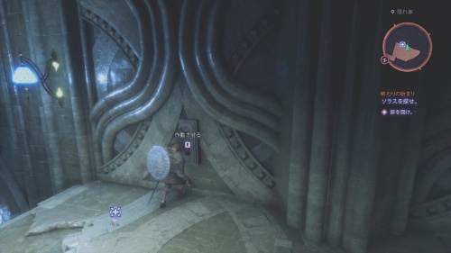 崖を上がって扉の上にあるレバーを引いて扉を開ける