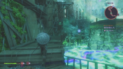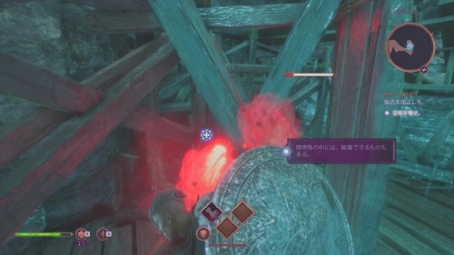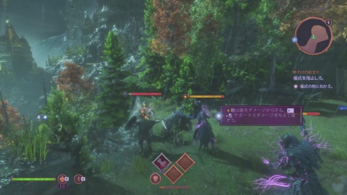 アビリティのチュートリアルなどを確認しながら敵を倒して先に進みます。倒し終わったら障壁を調べましょう。