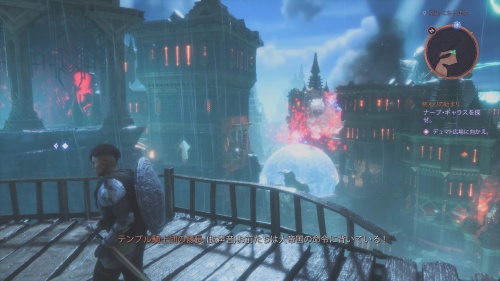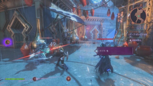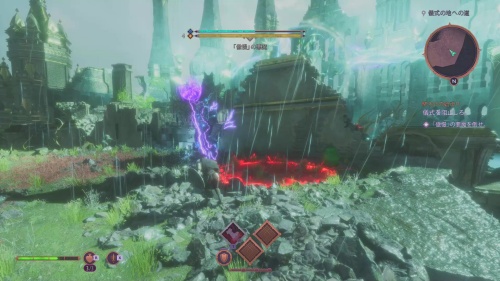 ボス「傲慢」の悪魔との戦闘になります。斬撃波はガードもしくは回避をし、地面に赤丸で表示される落雷はガードができないため、回避で避けましょう。
