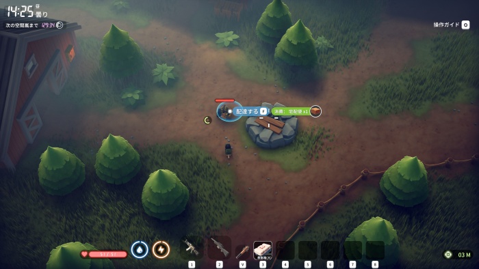 | 1つ目の荷物を受け取り、配達する 2つ目の荷物を受け取り、配達する 任意の敵を倒す 0/7 |