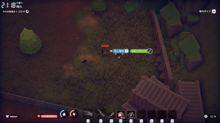 倉庫エリアと繋がる洞窟近くにスコップで掘れる穴があり、ここからスーパー電源を入手できる。