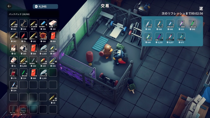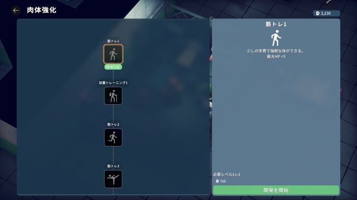 スキル強化と同じようにお金を使ってHPや最大携行重量を増やすことができます。