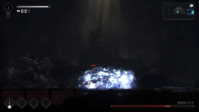 ・レストポイントから1つ前のエリアに戻って肉腫を破壊しパワーアップ「グリモア」を入手