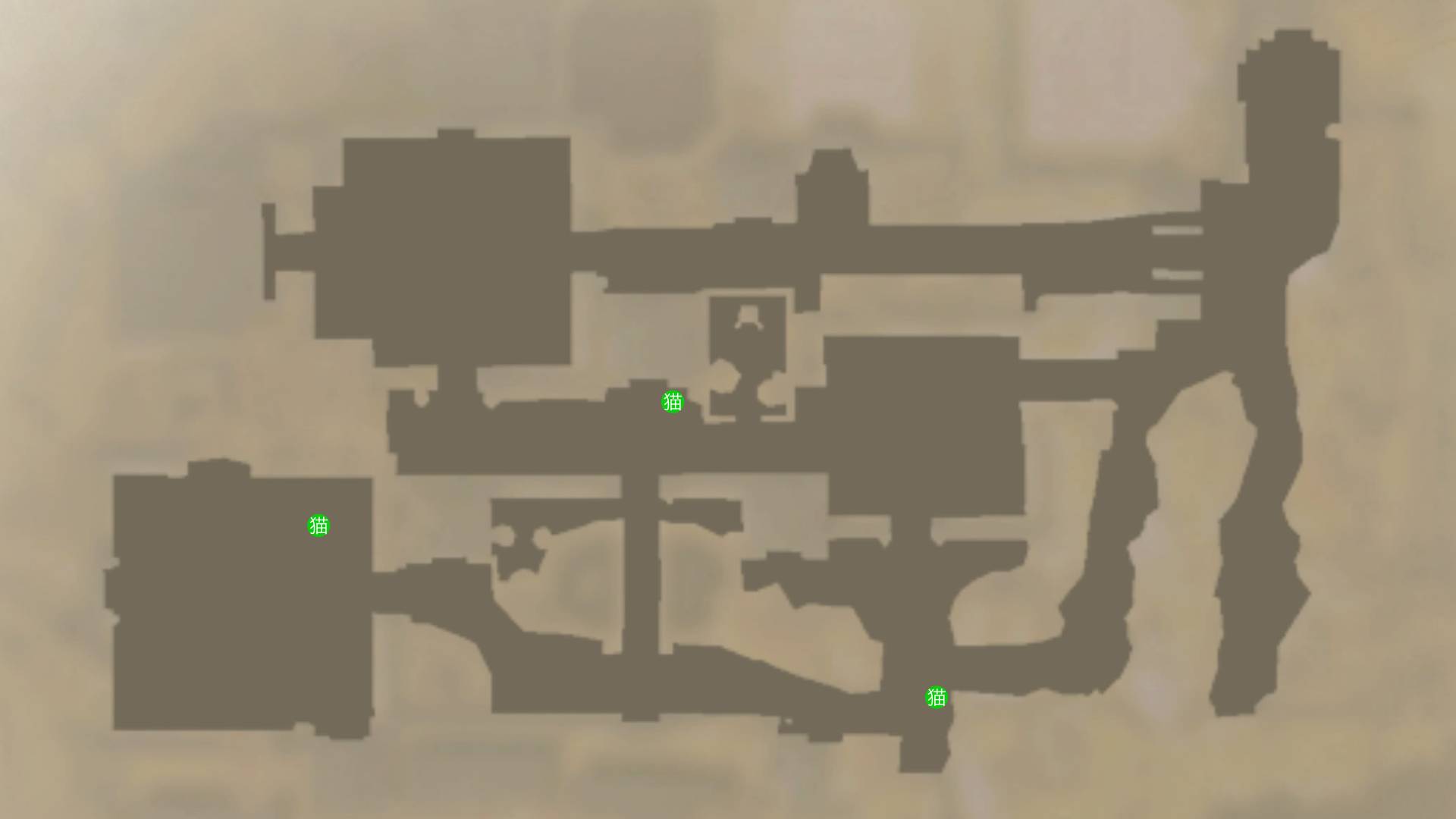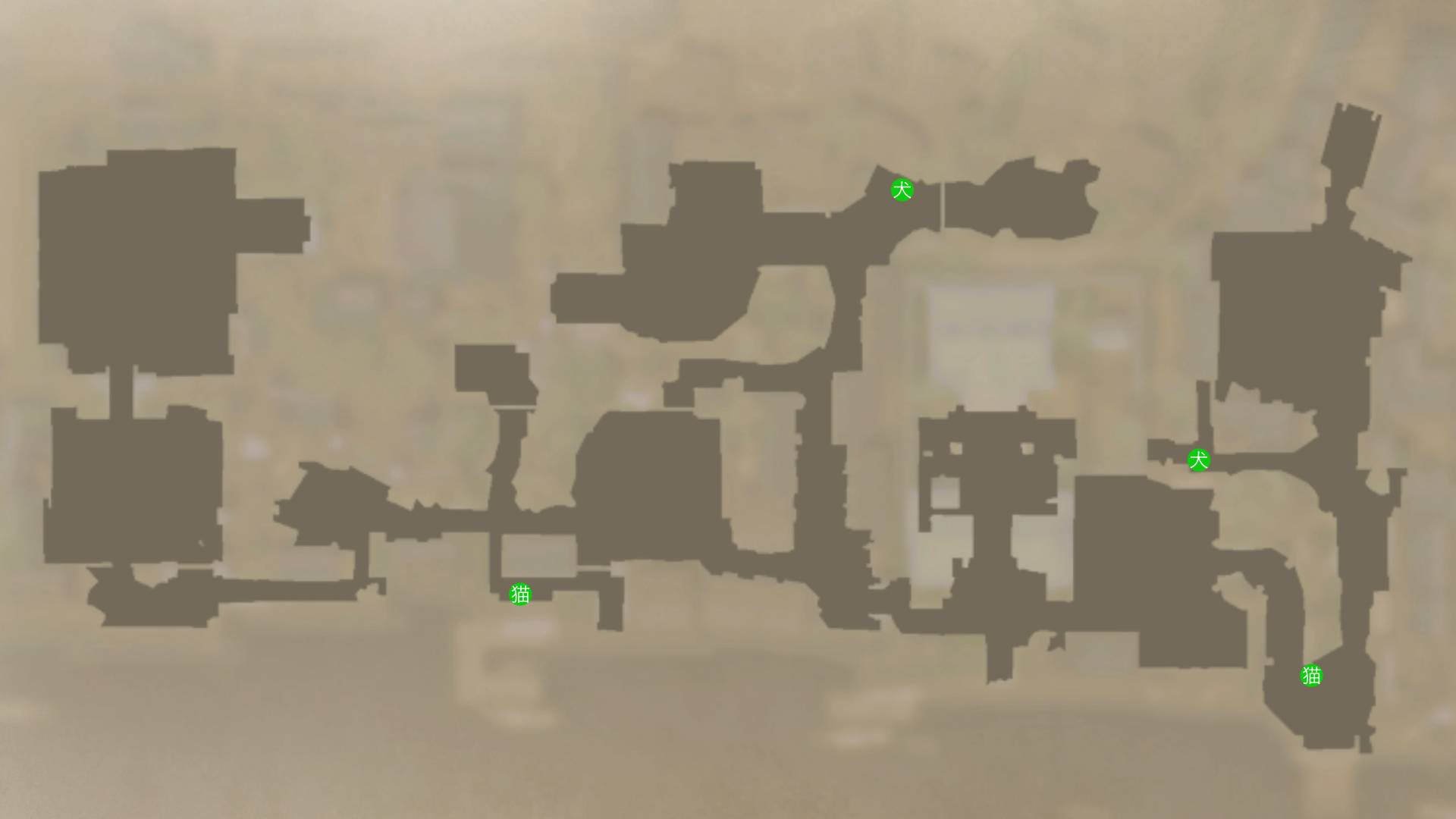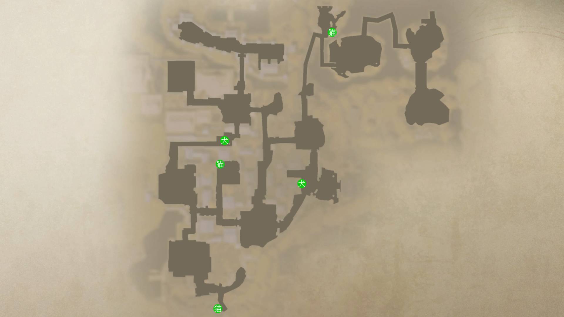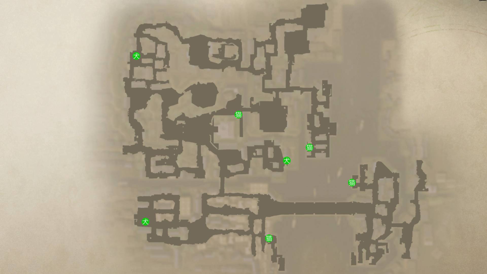 | 犬・猫の場所 | 古びた社の場所 |