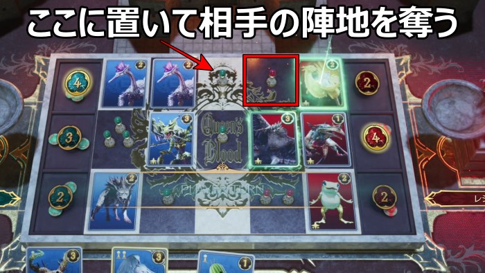 3列目にカードを配置するときは、4列目に敵のカードが置いている時に置くのがオススメです。