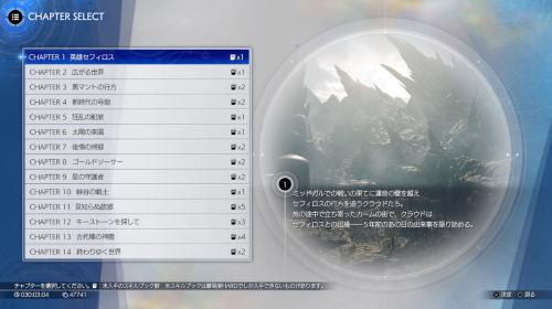 「CHAPTER SELECT」で各章を選び直す時には、ストーリーの進行状況は、その章の開始時点にリセットされます。