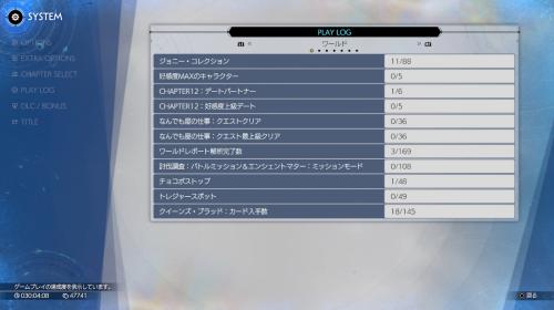 物語やバトルの達成状況がわかる、プレイログ機能が解放され、メインメニューの「SYSTEM」→「PLAY LOG」で確認することができます。